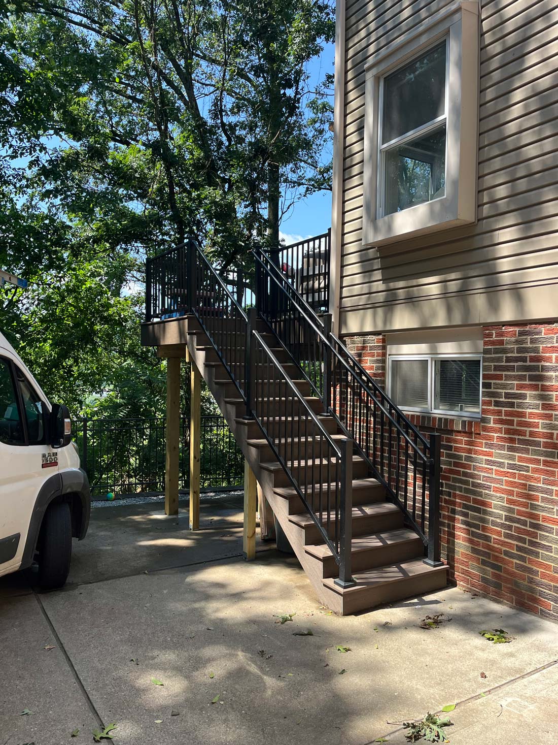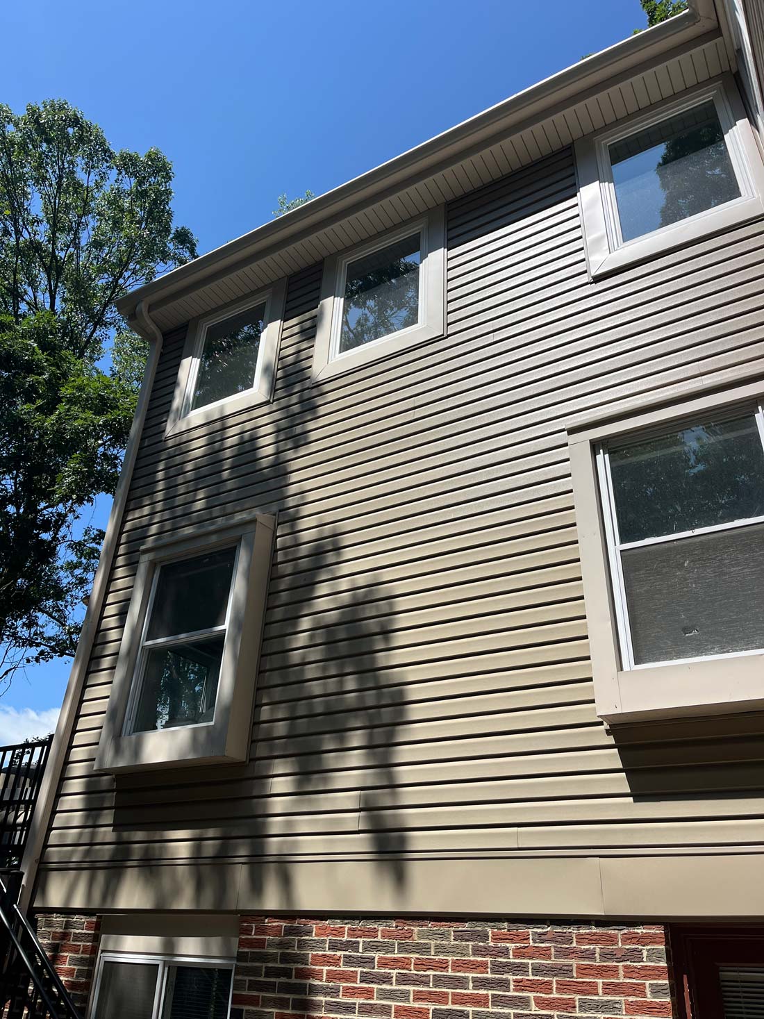 The home already featured a rear family room addition, and we built directly above it to create a spacious new bedroom suite complete with a walk-in closet and a full bathroom. The bathroom was designed as a modern wet room, featuring a tub and shower within the same waterproofed space for both style and functionality. To create a cohesive exterior, we rebuilt the existing deck and installed all-new siding across the entire rear of the home for a seamless, unified look.